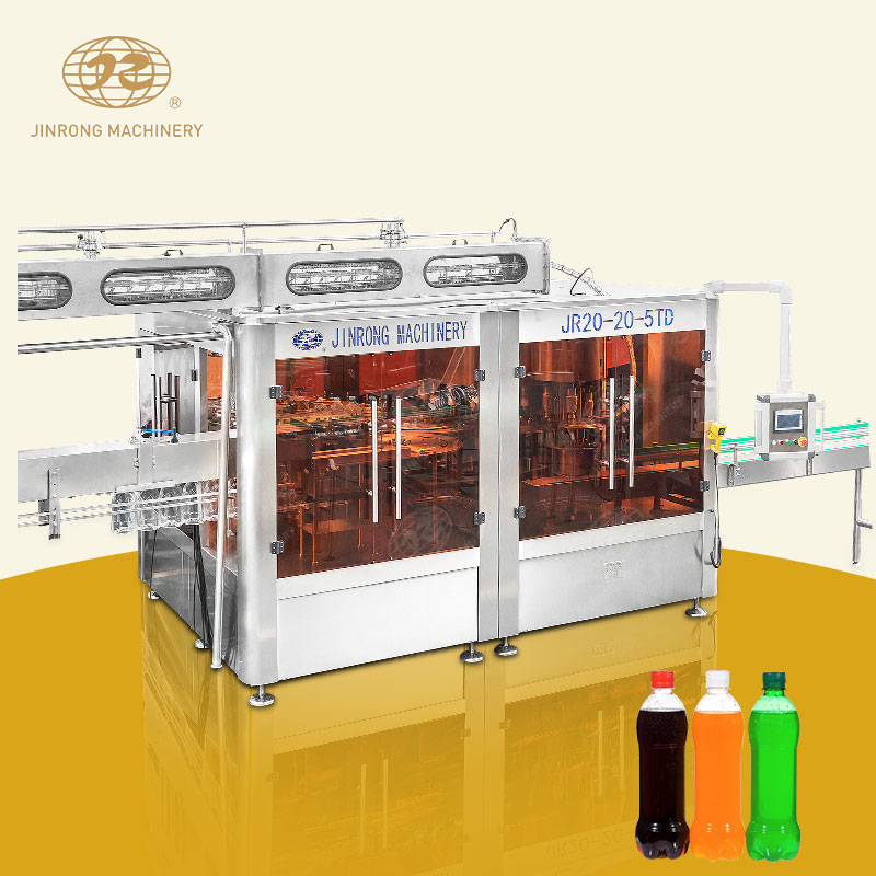 JR20-20-5TD 碳酸含氣飲料灌裝機主要用于含氣飲料的灌裝作業(yè),集沖洗,灌裝,封口三功能于一體。