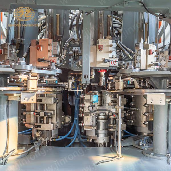 穩(wěn)定的吹瓶機(jī)系統(tǒng):采用底模合模聯(lián)動(dòng)結(jié)構(gòu),三合一組合吹氣閥。