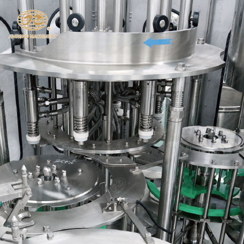 1.由理蓋器整理好的蓋子擰到已灌裝好產(chǎn)品的瓶子上,并由輸送鏈送至后道工序。